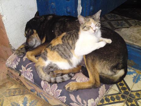 Laika und Mietze vor meiner Tür in Marokko